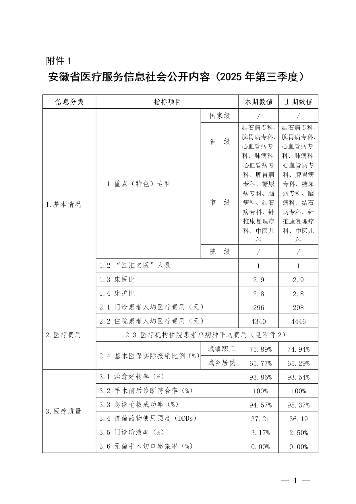 安徽省医疗服务信息社会公开内容(2025年第三季度)