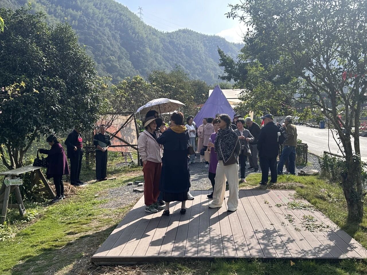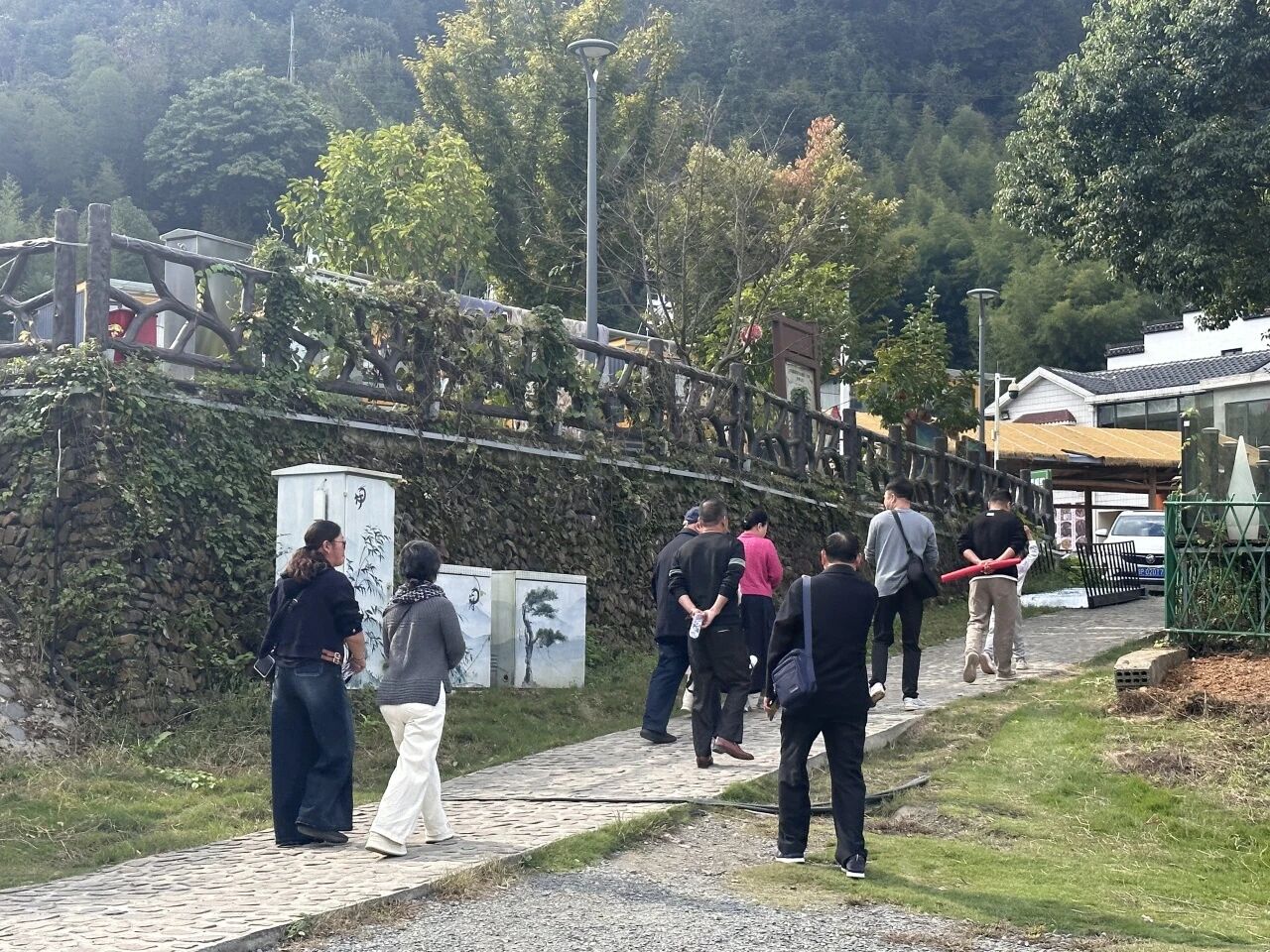 当日上午8:30,退休职工们准时在政府广场生态停车场对面集合,乘坐大巴车前往储家滩。金秋的储家滩层林尽染,河水清澈如镜,岸边步道蜿蜒,尽显皖南水乡的诗意与静谧。老同志们漫步河畔,呼吸着清新空气,欣赏着秋日盛景,不时驻足拍照,或三五成群忆往昔工作岁月、话今朝生活点滴,脸上洋溢着轻松愉悦的笑容。