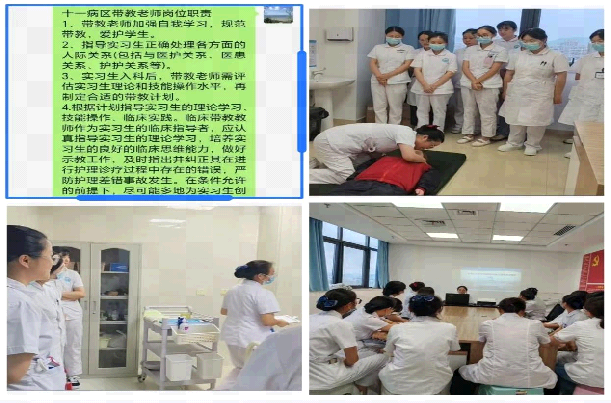 临床实习是护士实现理论知识向临床能力转化的关键环节,是其从学生角色向合格护士转型的核心阶段,更是迈向护理职业岗位的重要起点。为适应临床护理教学改革新要求,提升实习护士临床问题解决能力与理论实践结合水平,我院十一病区带教团队持续推进优质护理带教工作。 带教老师要求 1、熟练掌握十一病区带教老师岗位职责,严格遵循带教规范开展工作; 2、践行“身教重于言教”理念,具备扎实的专业理论基础与规范的临床技能操作能力; ![]() 3、注重人文关怀,关注实习护士的生活与心理状态,主动倾听其困惑并提供支持疏导,建立信任型师生关系。