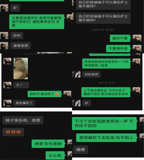 4、考核标准告知:提前明确实习周期内的出科考核内容、评价指标与通过要求; 5、个性化带教计划:实施“一人一策”方案——依据实习护士学习基础制定针对性目标,通过“观摩学习→理论结合→实操演练”的渐进式培养模式,助力实习护士在原有水平上实现最大化提升;实习结束时通过综合考核检验学习成果。 结语 护理带教是一项崇高且艰巨的使命。带教过程中,我们遵循“渐进式能力培养”原则: ● 初期:采用“示范-讲解”模式,带教老师主导操作,详细阐释操作要点与理论依据; ● 中期:转为“指导-实践”模式,实习护士自主操作,带教老师全程监护并及时纠正偏差; ● 后期:过渡到“独立-监督”模式,给予实习护士独立思考与操作空间,同时保持有效监护,确保患者安全与护生信心。 每一次操作后,我们及时组织复盘:肯定实习护士优点,明确改进方向;通过正向反馈(如“您今日静脉穿刺操作规范流畅,表现出色”)或细节关怀(如生日祝福),增强团队凝聚力与实习护士归属感。 未来,我们将进一步优化带教体系: ● 创新教学模式:引入情景模拟、案例讨论等互动式教学,激发实习护士主动性与批判性思维; ● 强化人文素养:引导实习护士理解安宁疗护、叙事护理等理念,培养其职业共情能力; ● 深化传承与成长:以实习护士的朝气与求知欲为契机,实现与新时代护理力量的共同进步。 护理带教不仅是职业技能的传递,更是护理精神的传承。我们将持续深耕此项工作,为培养更多专业扎实、人文兼具的合格护理人才而不懈努